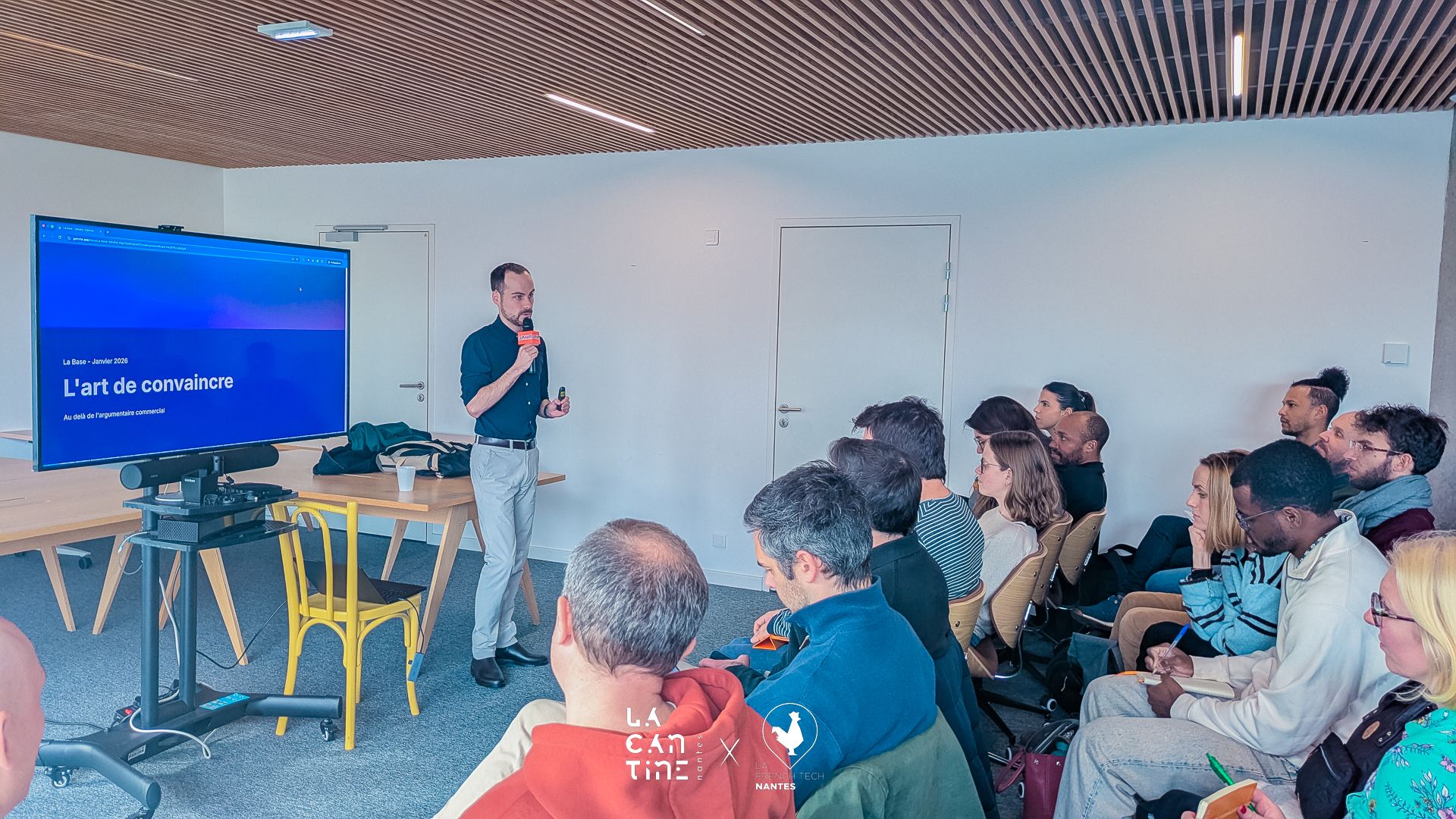 La Base est un bootcamp intensif, collectif et gratuit de 8 semaines (150 heures de formation) organisé par La Cantine x La French Tech Nantes. Le programme accompagne des entrepreneurs en solo ou en duo portant un projet d’innovation (tech, usage ou impact sociétal) en Pays de la Loire. Il combine masterclasses, mentorat par des entrepreneurs confirmés, retours d’expérience et sessions de co-développement. L’édition 2026 s’est déroulée du 12 janvier au 13 mars à La Cantine, au cœur du Quartier de la Création à Nantes.