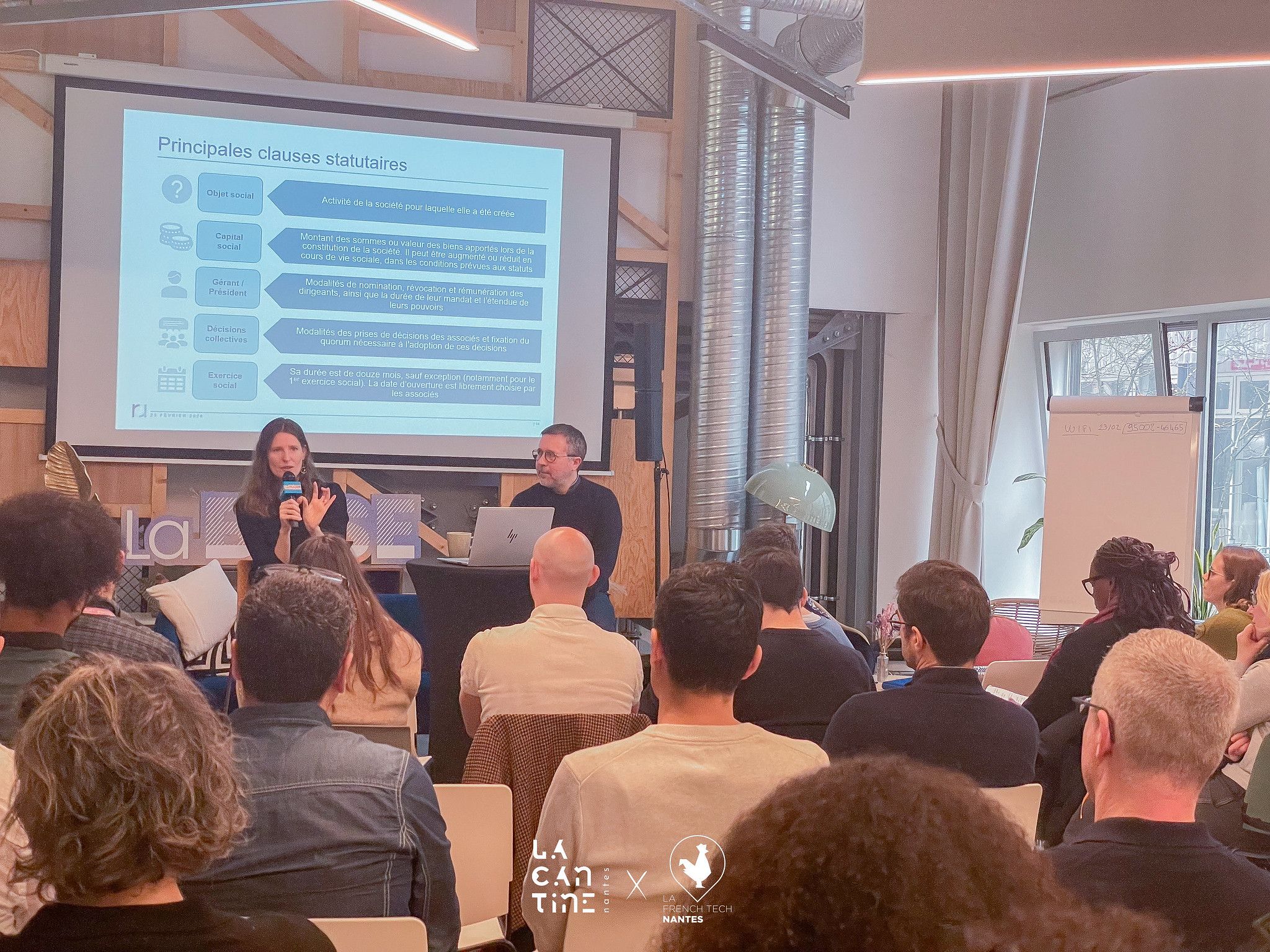 Clémence Baron et Loullig Bretel, associés au sein du cabinet Racine Nantes, ont animé un atelier juridique couvrant la protection de l’entrepreneur et de sa famille, la structuration juridique du projet, le pacte d’associés et la sécurisation des actifs immatériels. Comme le résumait un participant :
