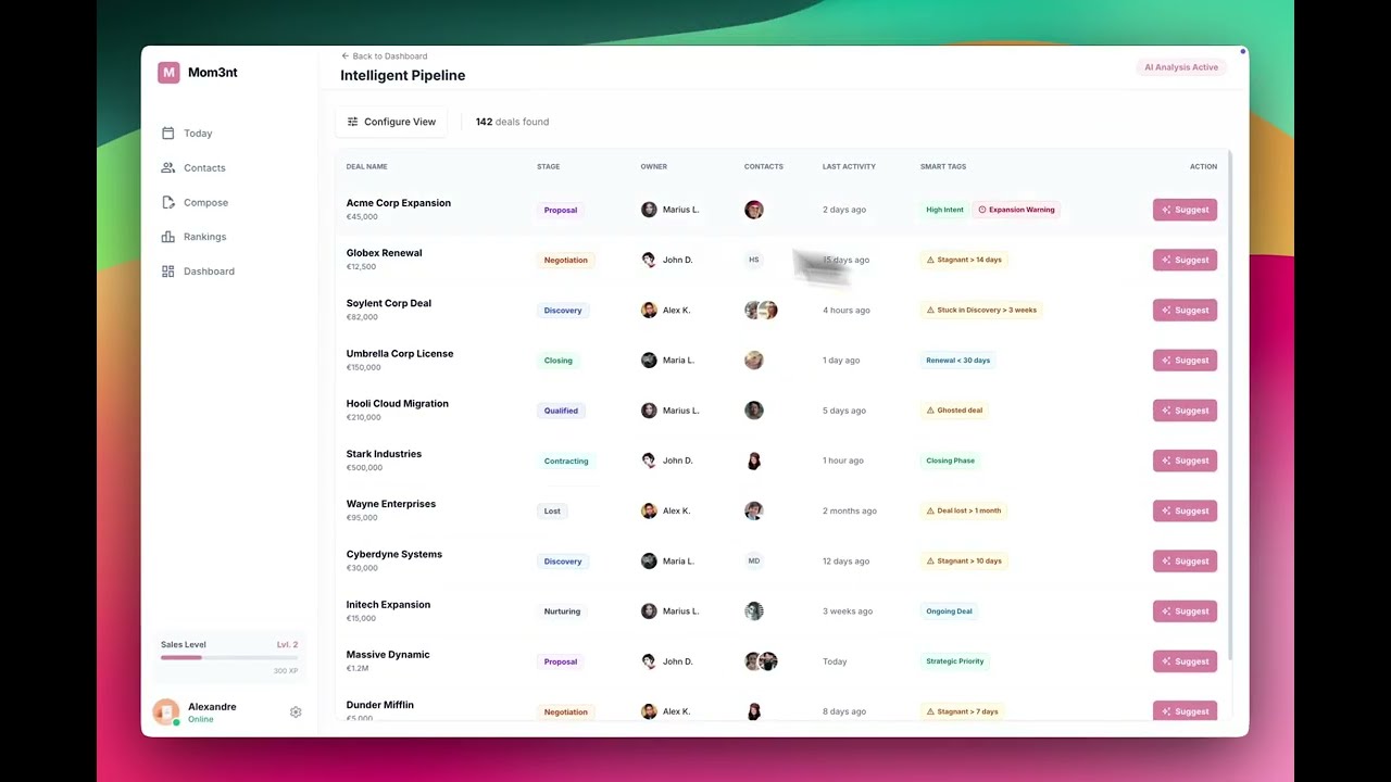 Arnaud Gagne et Alexandre Lam, deux entrepreneurs commerciaux, portaient une conviction forte : l’IA peut transformer en profondeur la façon dont les commerciaux nurturent leurs prospects. Leur vision pour Mom3nt : une solution SaaS AI-first, orientée agents spécialisés, qui croise les données CRM, les échanges emails et des signaux externes pour recommander automatiquement la meilleure action commerciale au bon moment.