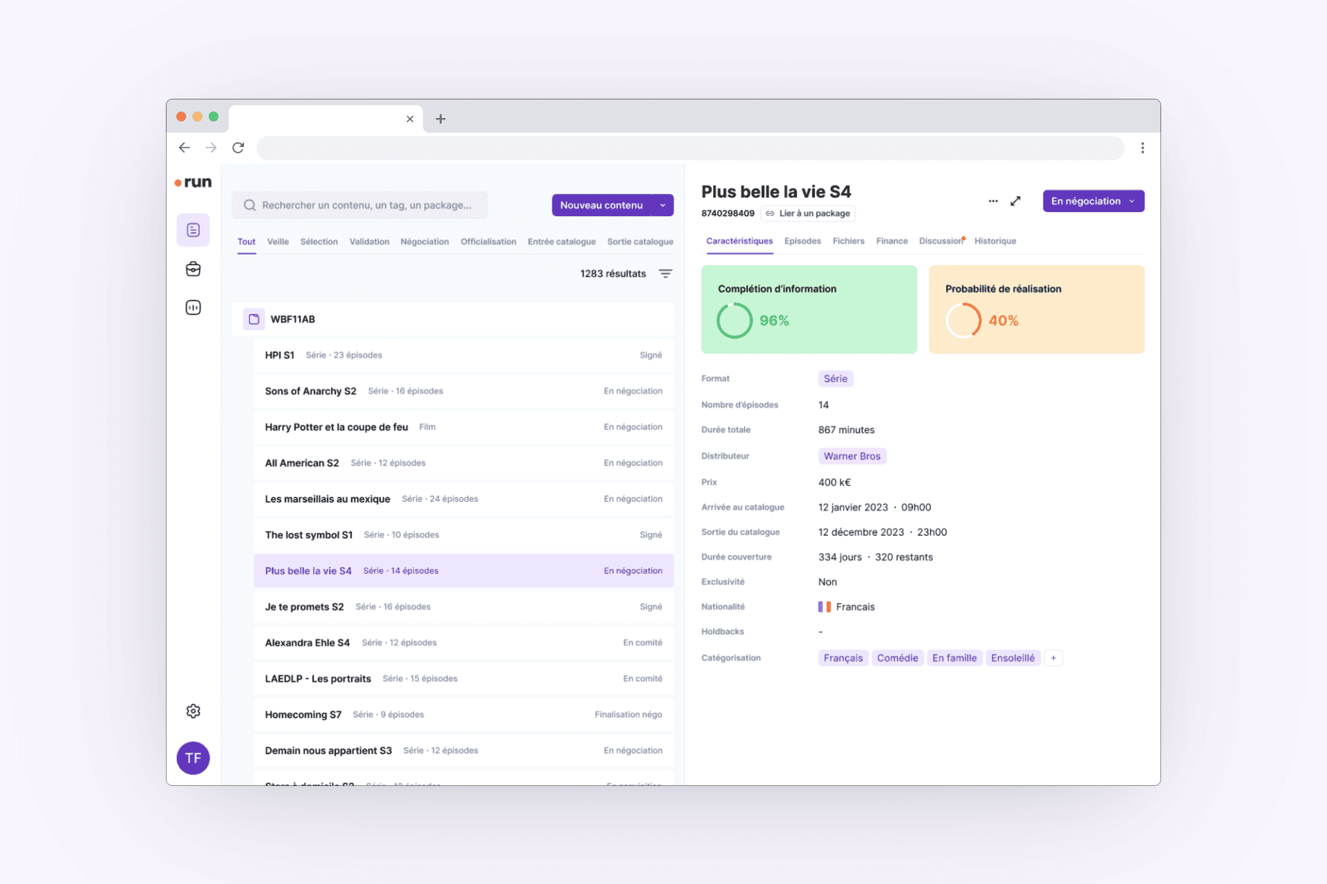 Le projet étant massif, le MVP a été construit sur deux briques fonctionnelles prioritaires : le suivi des processus d’acquisition de contenus audiovisuels et le pilotage financier du parc de contenu. Les objectifs du MVP étaient les suivants :